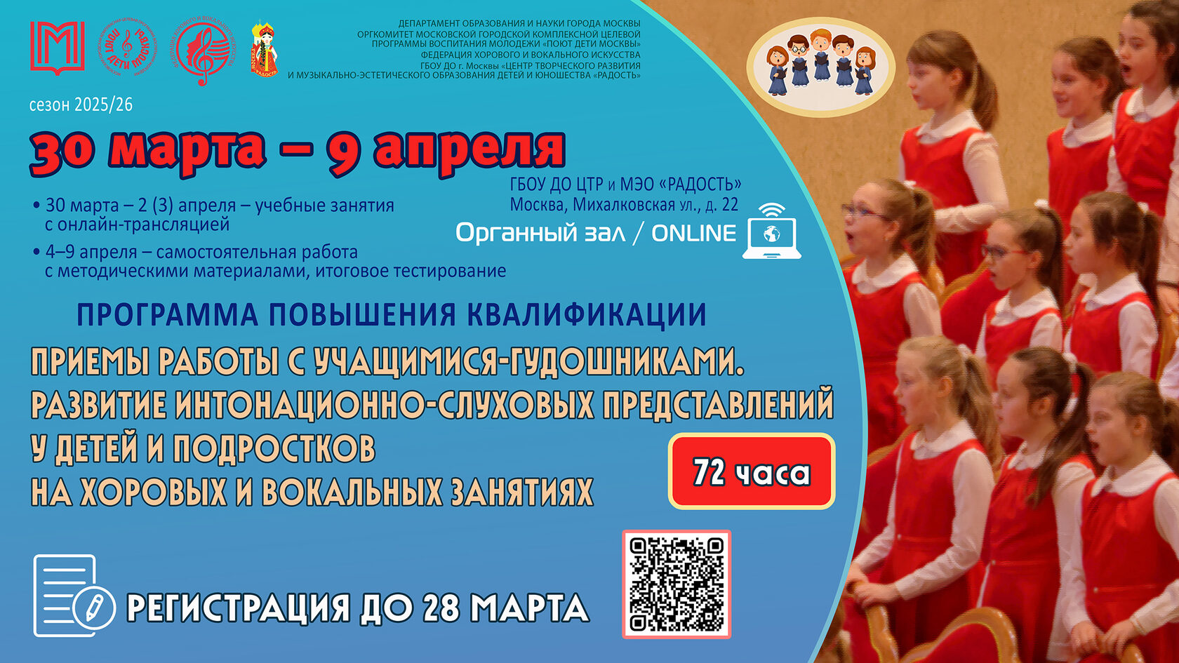 Оргкомитет программы «Поют дети Москвы» и Федерация хорового и вокального искусства приглашают педагогов-хормейстеров, учителей музыки, преподавателей хоровых и вокальных классов на обучение по программе повышения профессионального мастерства (курсы повышения квалификации).