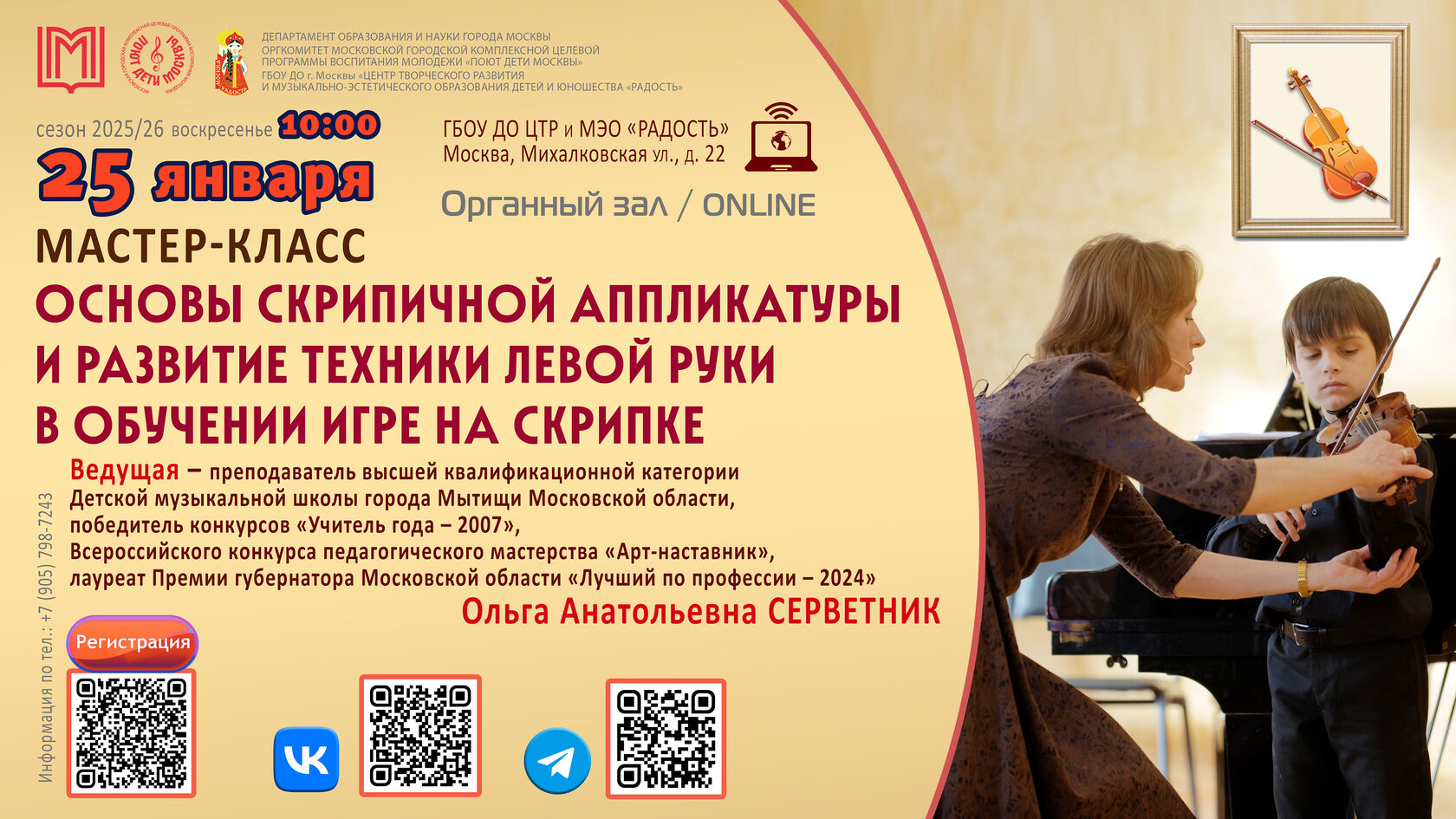 📍 Место: Органный зал ГБОУ ДО ЦТР и МЭО «Радость» (Москва, Михалковская ул., д. 22)