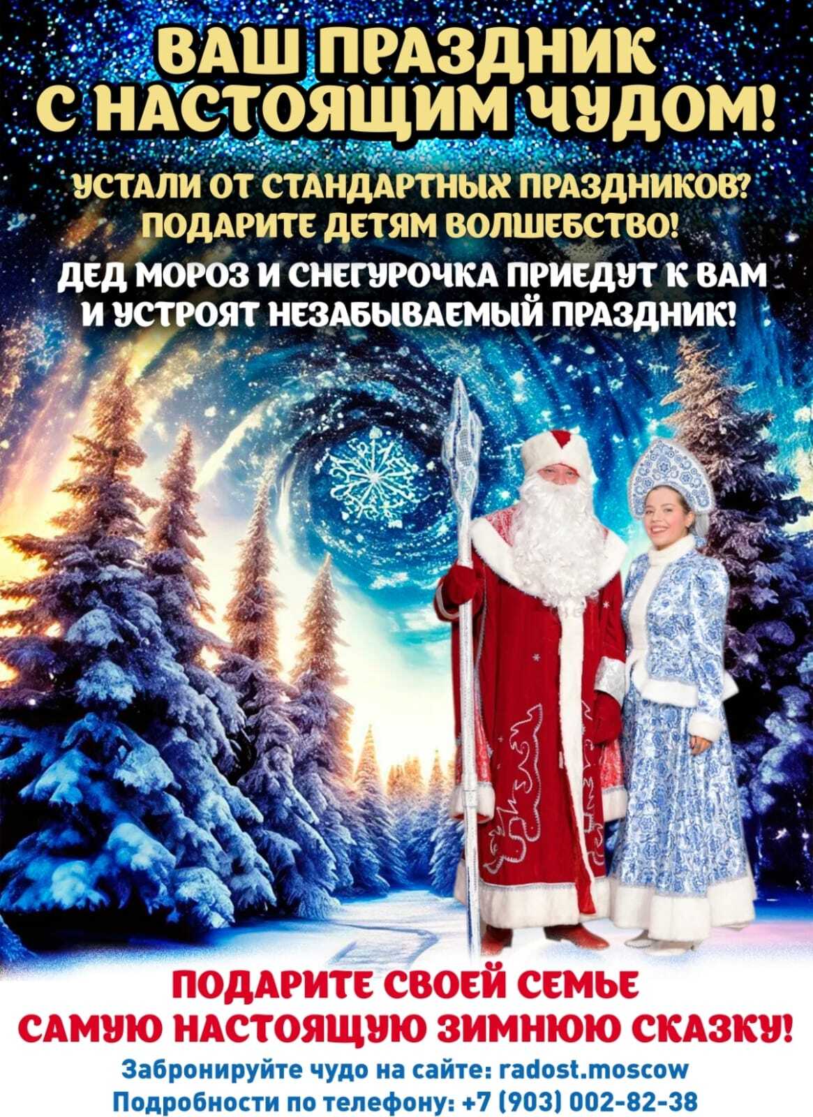 В декабре Центр «Радость» запускает большую новогоднюю программу – с 12 по 30 декабря вы можете заказать поздравление от настоящих Деда Мороза и Снегурочки.